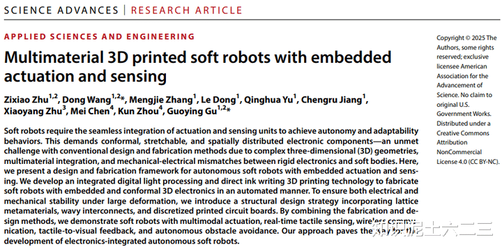 当机器人不再是冰冷坚硬的金属外壳,而是能像生物一样灵活变形、感知环境,甚至自主规避障碍 —— 这不是科幻电影场景,而是上海交通大学等团队最新发表在《Science Advances》上的科研突破!